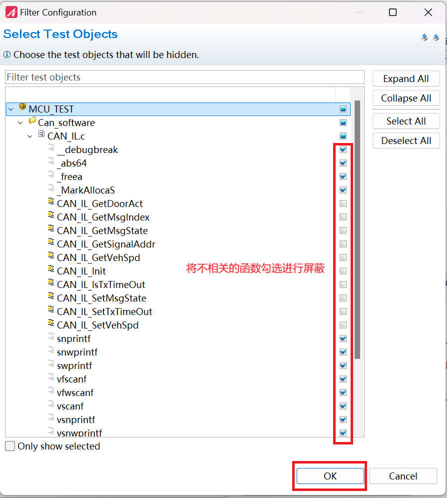 - 小概率Tessy会生成一些自带的函数,需要屏蔽它们(图标变灰),如下图